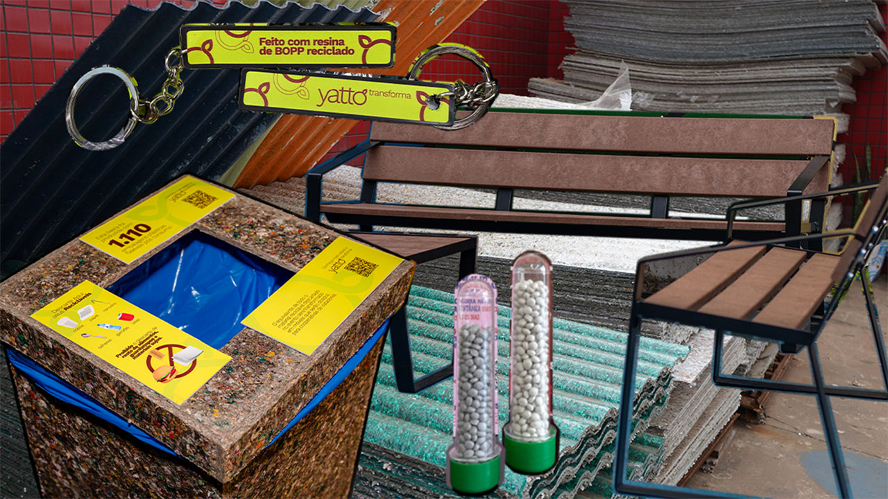 As possibilidades de transformação desses materiais são inúmeras e variam conforme o serviço contratado por cada cliente. Por exemplo, para os clientes do nosso programa de economia circular, o Yattó Transforma, trabalhamos com a transformação de dois materiais principais: embalagens flexíveis e poliestireno. No caso das embalagens flexíveis, elas podem ser convertidas em novos produtos utilizando resina reciclada ou até mesmo em materiais promocionais para uso da própria marca no ponto de venda. Neste post sobre vantagem competitiva, mostramos como é possível incorporar o seu próprio material reciclado nos seus produtos como parte da estratégia ESG.